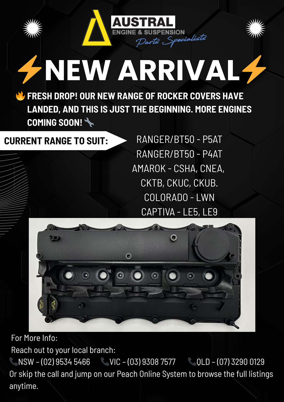 Founded in 1978, Hugh and Don Joy have steadily grown Austral Distributing into one of the largest engine and suspension wholesalers in the country with distribution centres located in New South Wales, Victoria and Queensland. View our video to learn more.